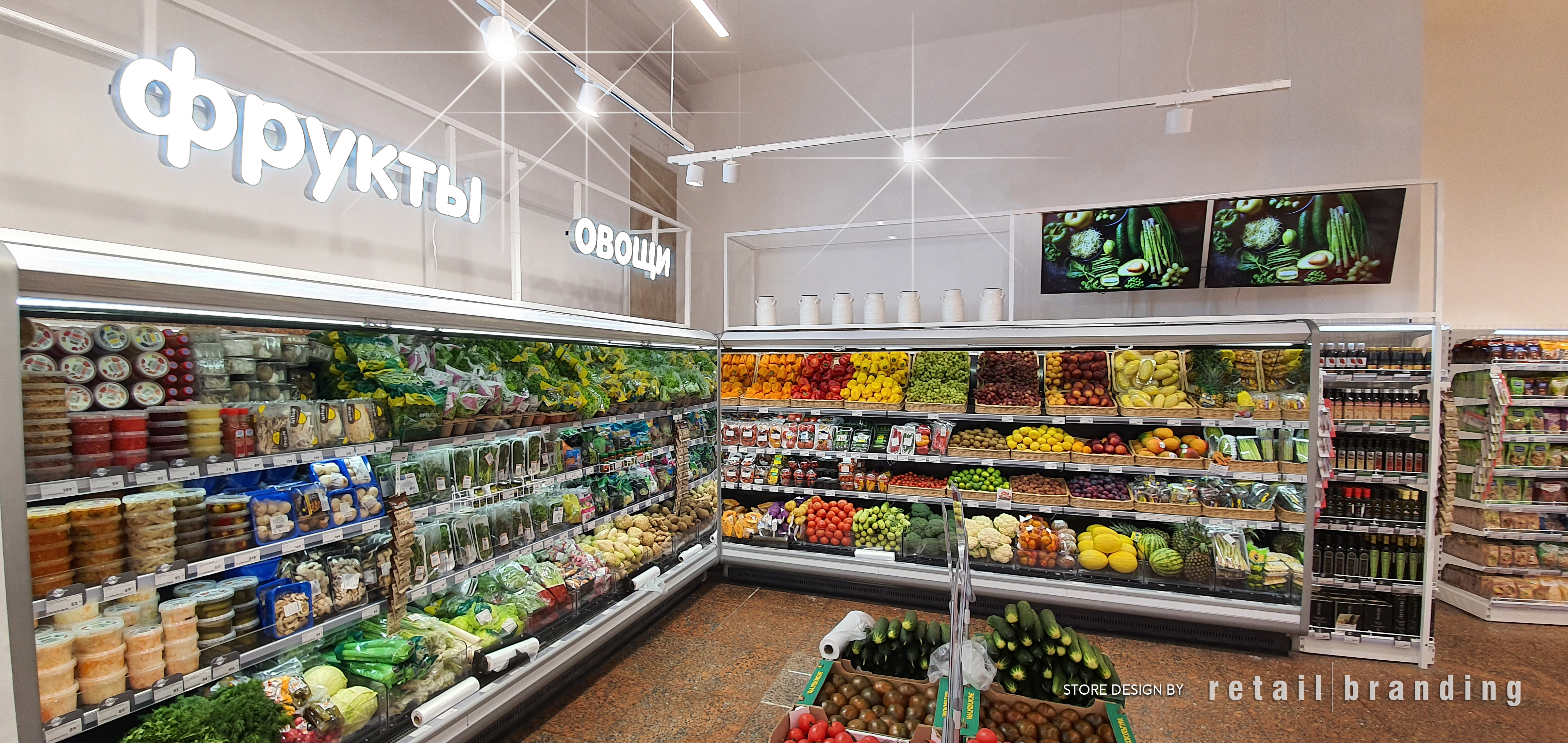 Standort: Moskau Betriebstyp: Supermarkt Realisierung: 01-2020 Verkaufsfläche: 1200m² Leistungen retail branding: Store Design, Store Planning, Licht-Konzept, Visual merchandising, Supervision.