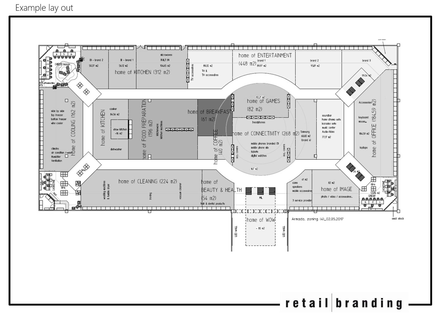 Mit Hilfe von Skizzen, Plänen und Renderings werden die wesentlichen Ideen des neuen Marktauftritts dargestellt. Bestandteil der Darstellung sind Grundrissvorschlag, Teilbereiche der Wandabwicklung, Mittelraumelemente, Branding-Entwurf, Farb- und Materialideen etc. Die Darstellung der künstlerischen Idee soll einen ersten Eindruck vom neuen Konzept anschaulich widergeben.