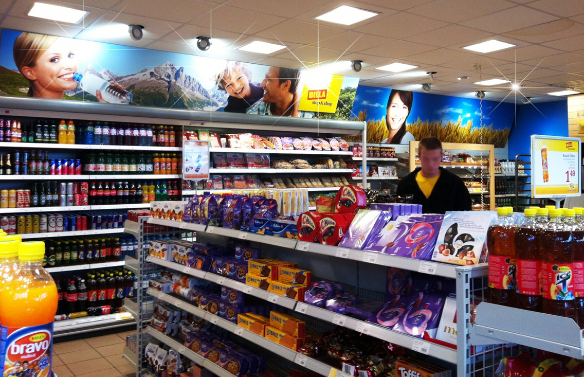 Standort: Elixhausen (Salzburg) Betriebstyp: Tankstellen-Shop Realisierung: 2010 Verkaufsfläche: 85 m² Leistungen retail branding: Store Design, Store Planning, Foto-Konzept, POS-Materialen