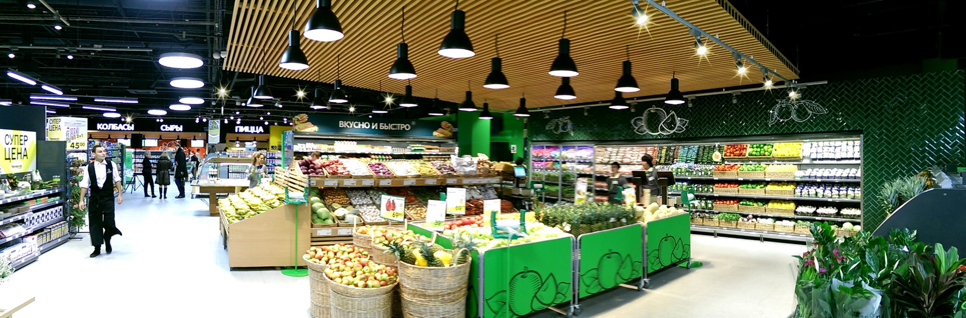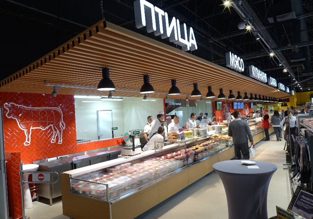 Standort: Moskau Betriebstyp: Supermarkt Realisierung: 10/2014 Verkaufsfläche: 1700 m² Leistungen retail branding: Store Design, Store Planning, Visual Merchandising mehr >> (Presse-Information)